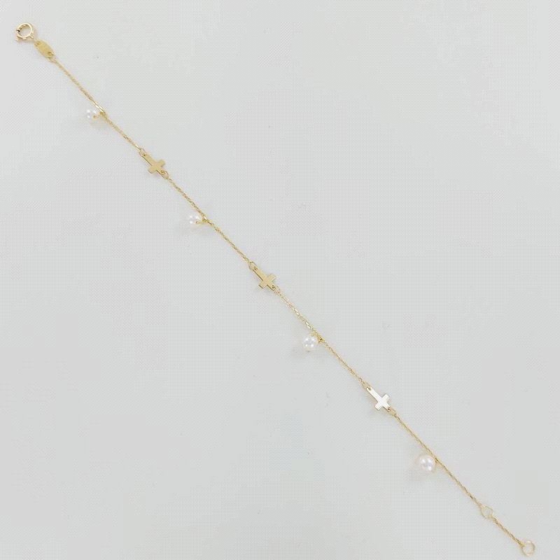 PULSERA ORO PERLAS Y CRUZ